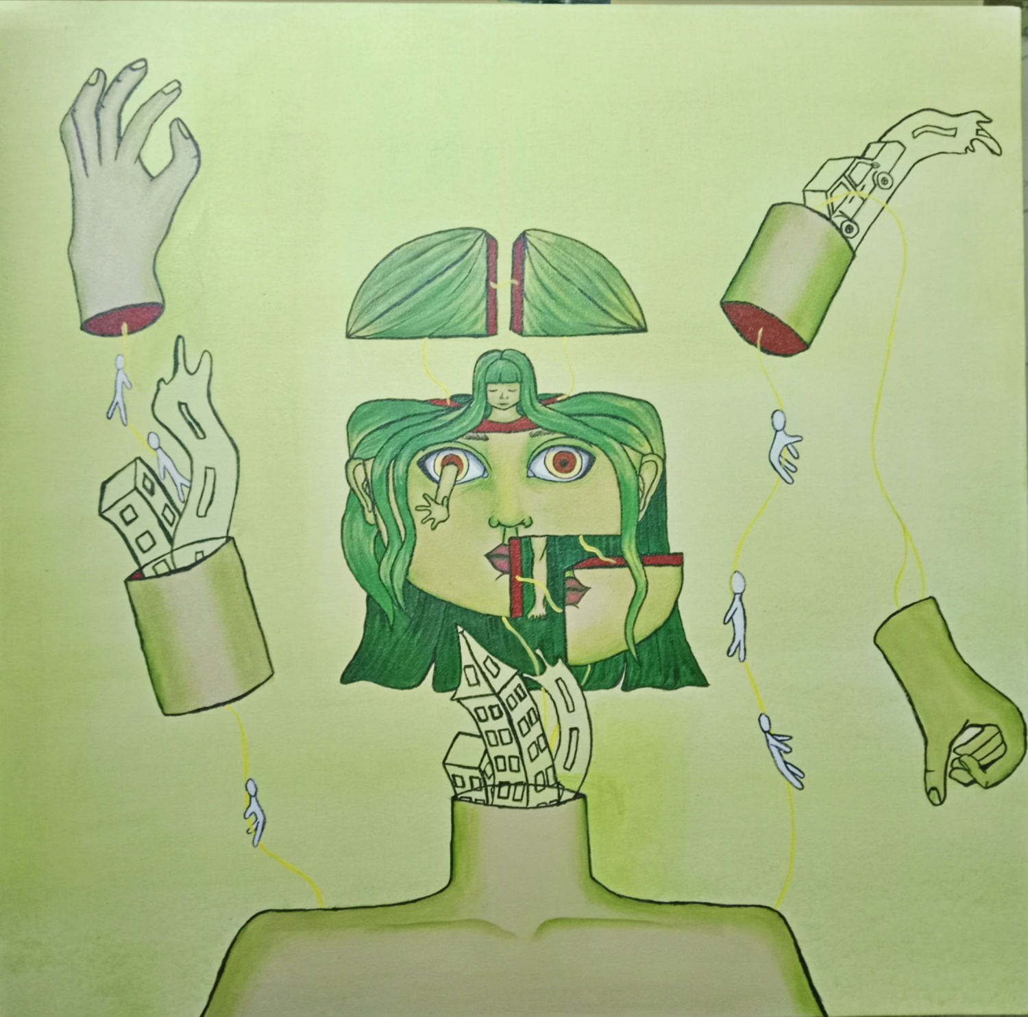 This is a canvas painting drawn from my dream which shows that how society influence our subconscious mind without knowing
