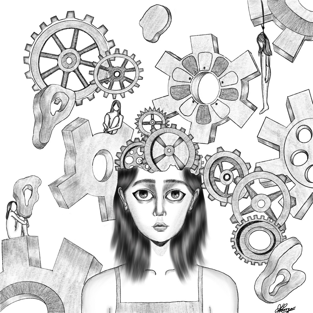 This is a digital painting drawn from my dream which shows that how a person is overthinking with no hopes to live but still continues to overthink and overthink