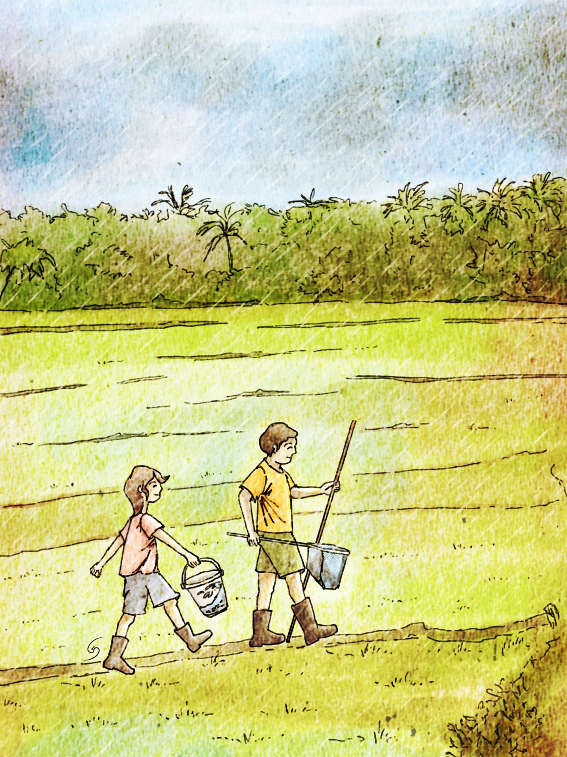 This artwork is inspired by a sweet memory of me and my dad going fishing on a light rainy day in the nearby fields. The soft drizzle, the cool breeze, and the little puddles around us made everything feel calm and happy,.A simple, lovely father-daughter moment I’ll always cherish.