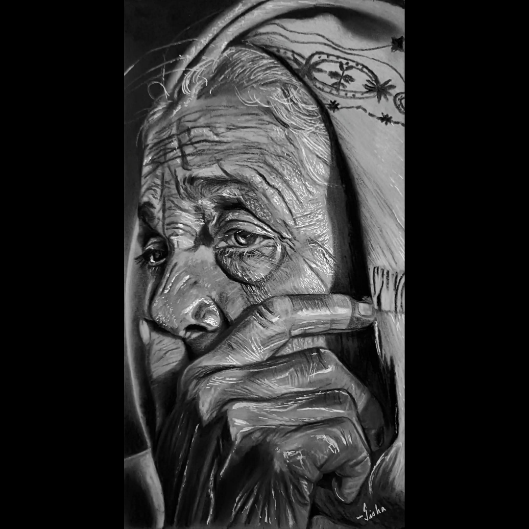 Charcoal Pencil used for drawing. Its an A4 size sketch.