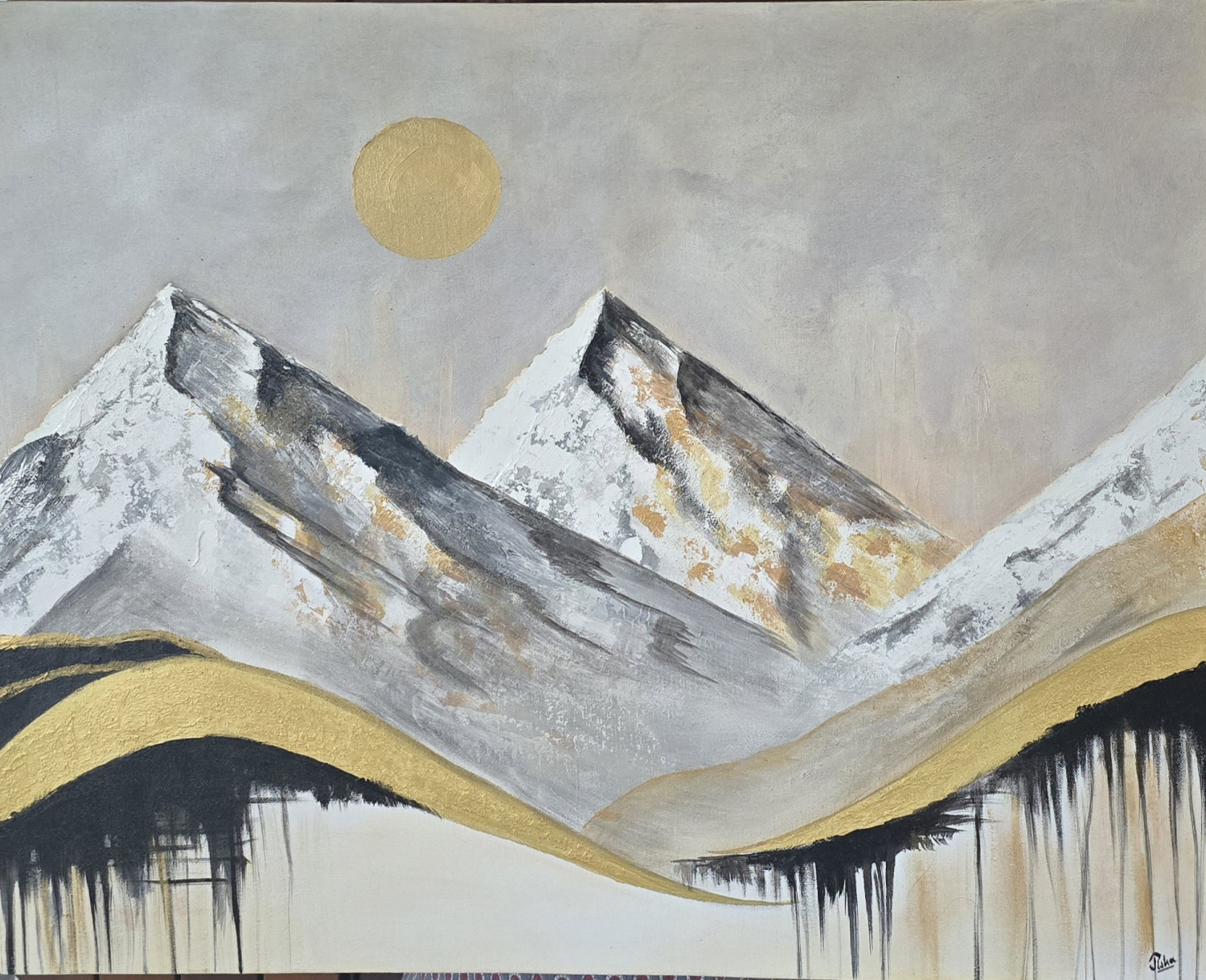 Snowy mountains with a semi abstract art.