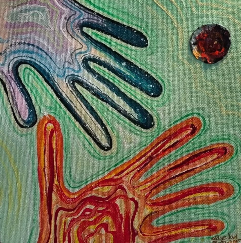 Experience the quiet draw of "Apocalypse", a one-of-a-kind original acrylic painting that commands possibilities of two souls(worlds) trying to connect each other through the odds. Measuring 8 x 8 inches, this canvas embodies two souls finding each other one day and their souls keep moving towards each other and it is known that one day it will collapse. It represents the love, longing, grief, possibilities, pain of two souls.