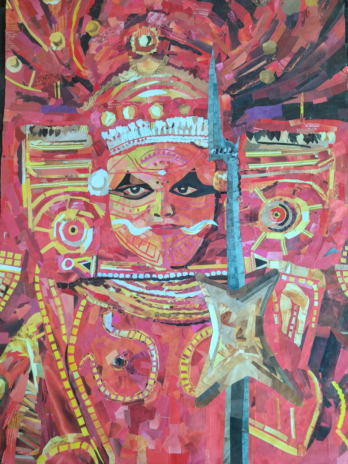 Paper collage work.made from peace of paper in magazines.theyyam.forklore art in kerala.muchilotu bagavathi theyyam.in Malabar kannur area..