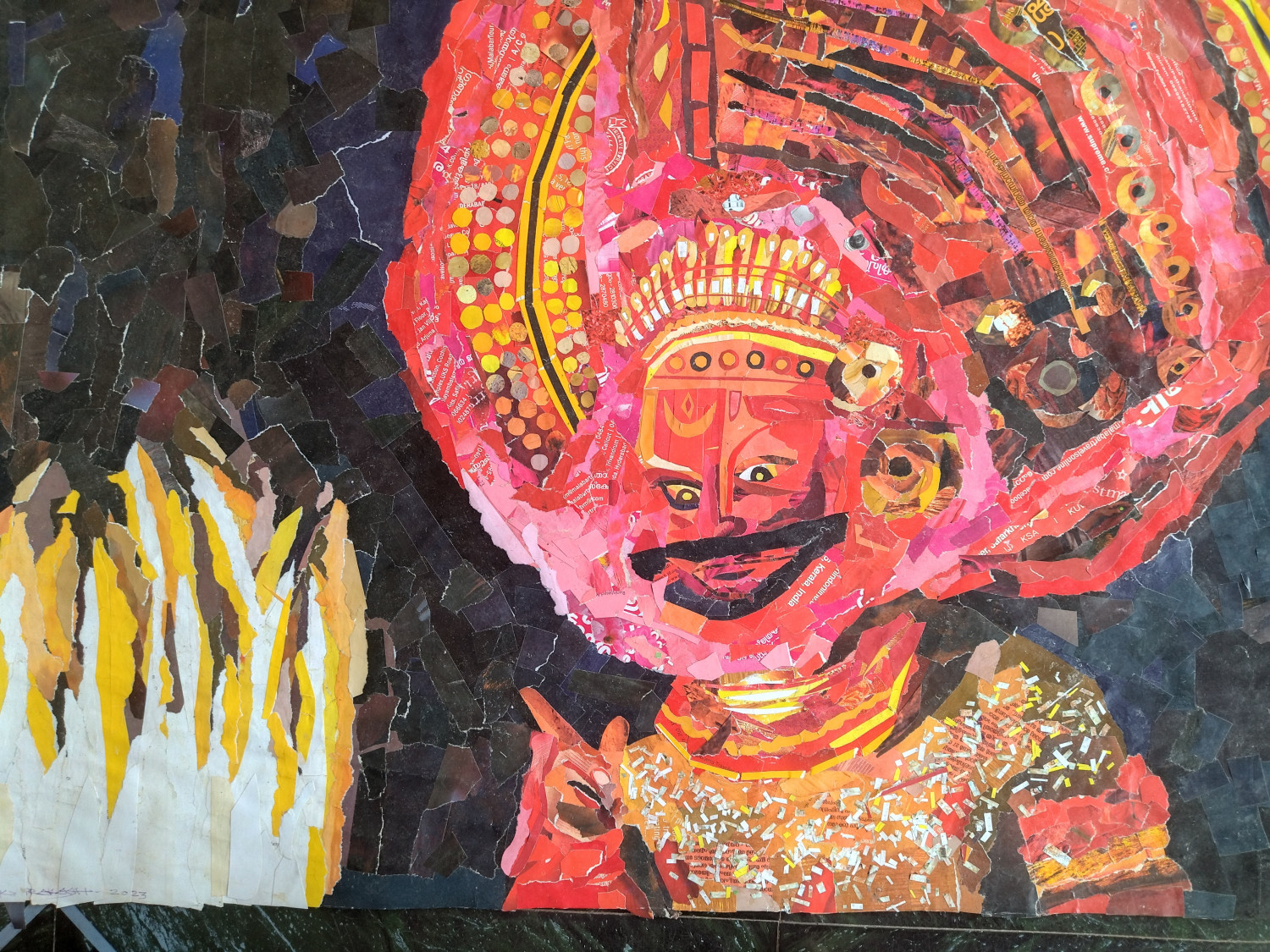 Kathivannoor veeran paper collage work made from bits of paper in magazines. Size:22"*28".