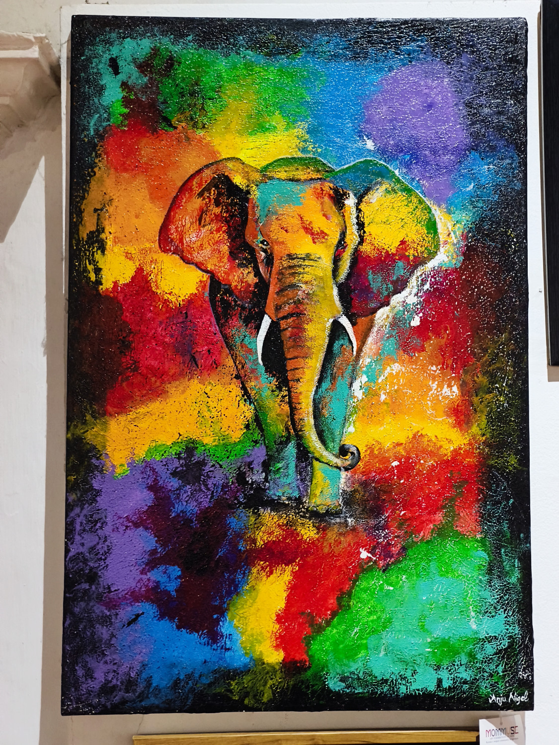 This painting captures the raw power and majesty of an elephant in its natural element.With dynamic brushworks and bold tones,the painting portrays elephants strength, determination and untamed spirit, embodying the fierse energy of wild.The artwork celebrates the grandeur of nature and reminds viewers of the intensity, beauty and resilience found in the forest.