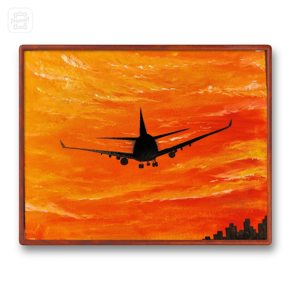 The deep orange hues reflect the warmth of nostalgia and the joy of reuniting with loved ones. The silhouette of the aircraft against the skyline evokes a sense of anticipation and heartfelt emotion. It is a visual tribute to the cherished moments spent in flight, carrying dreams, memories, and the happiness of returning home.