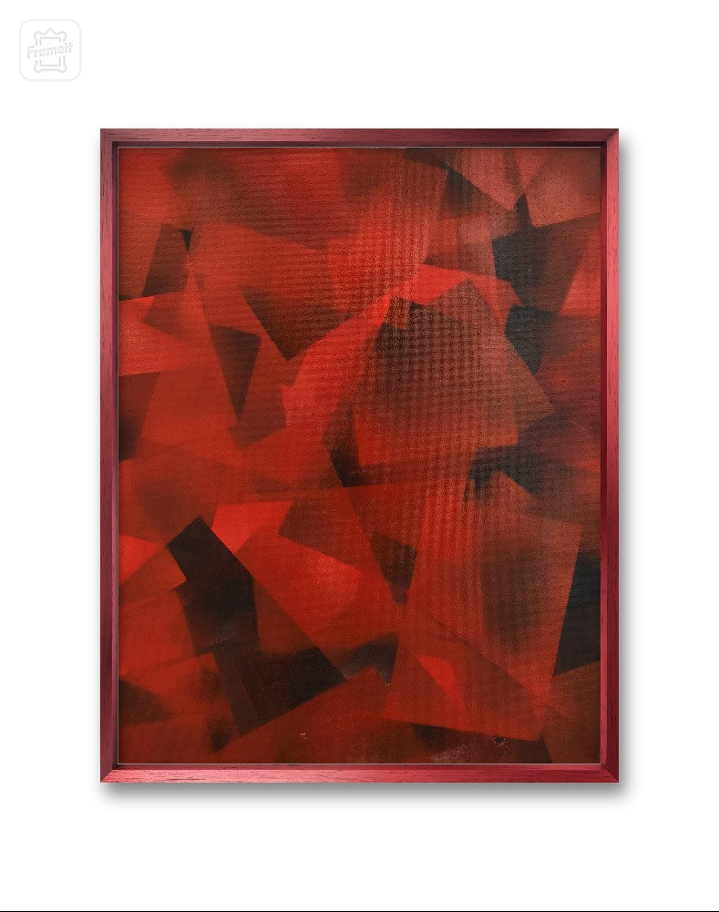In 'Bound by Anxiety', red and black rectangles overlap, capturing the suffocating grip of mental unease in simple yet striking imagery.