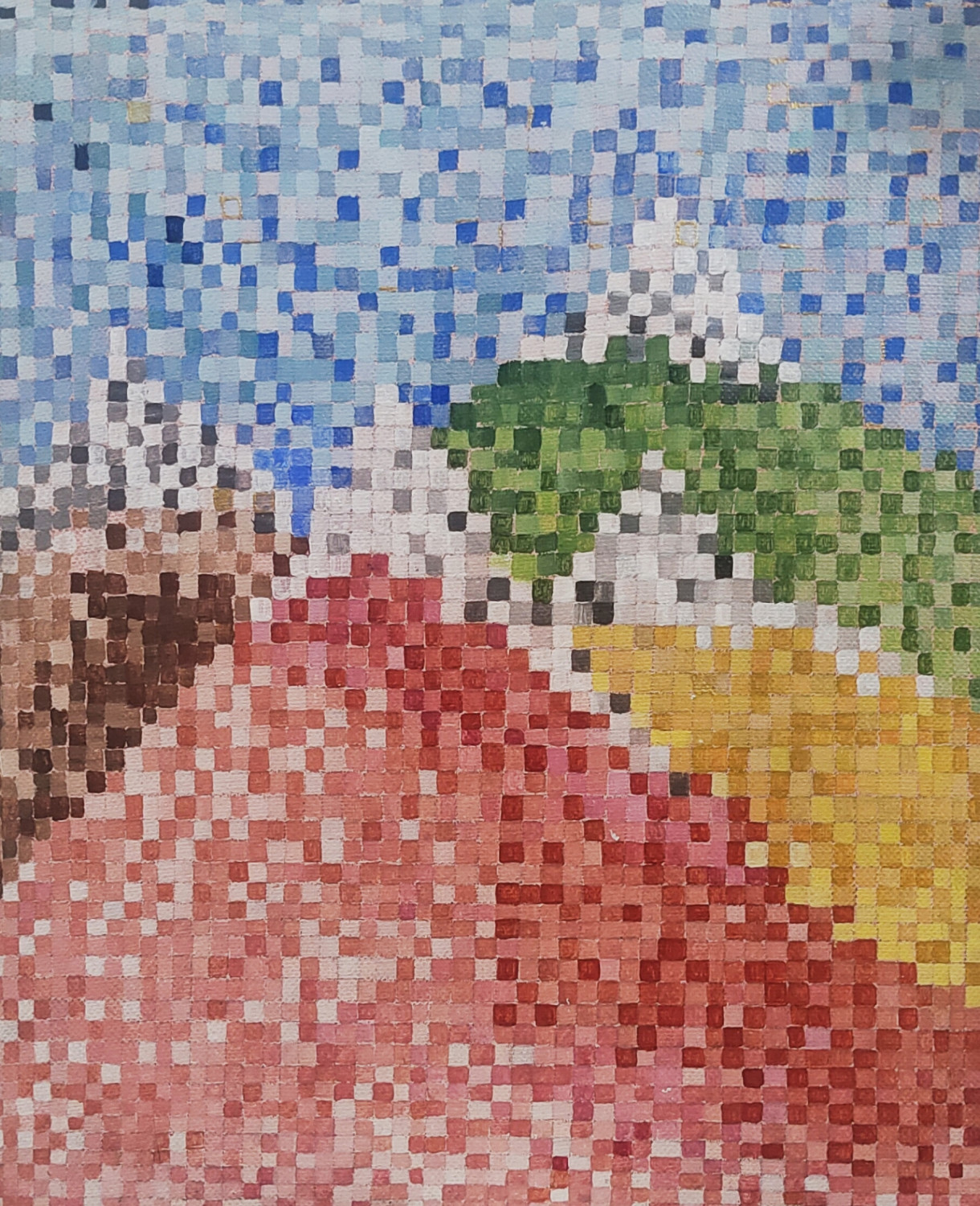 Experience the quiet draw of "Snow Caps", a one-of-a-kind original acrylic expirimental painting that commands there is no limitations to art. Measuring 10 x 12 inches, this canvas freezing the moment like a photographic style art with pixels.