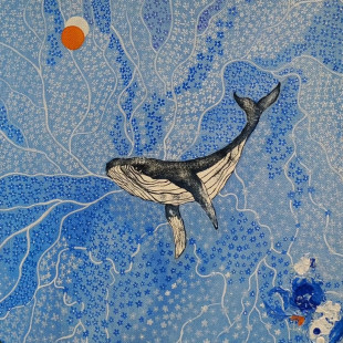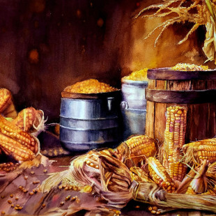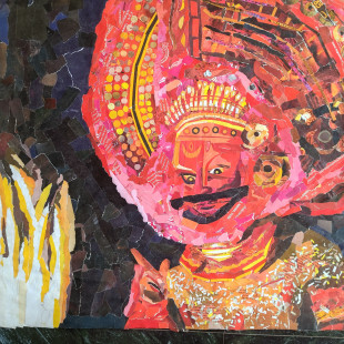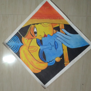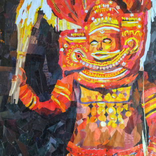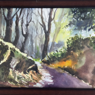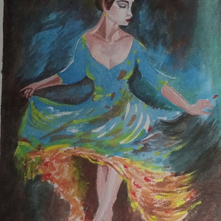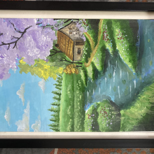 “A beautiful, peaceful home by the waterfall — acrylic landscape painting.”(46x33 cm size)